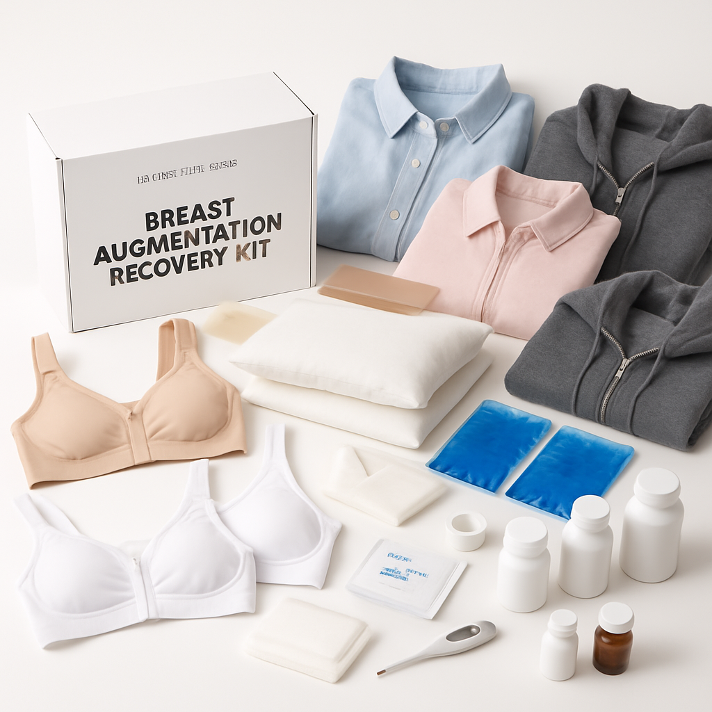 Essential recovery package for breast augmentation surgery patients, including specialized post-surgical bras and comfort items for optimal healing. This kit provides everything needed for a smooth 4–6-week recovery with professional-grade wound care and pain management support.